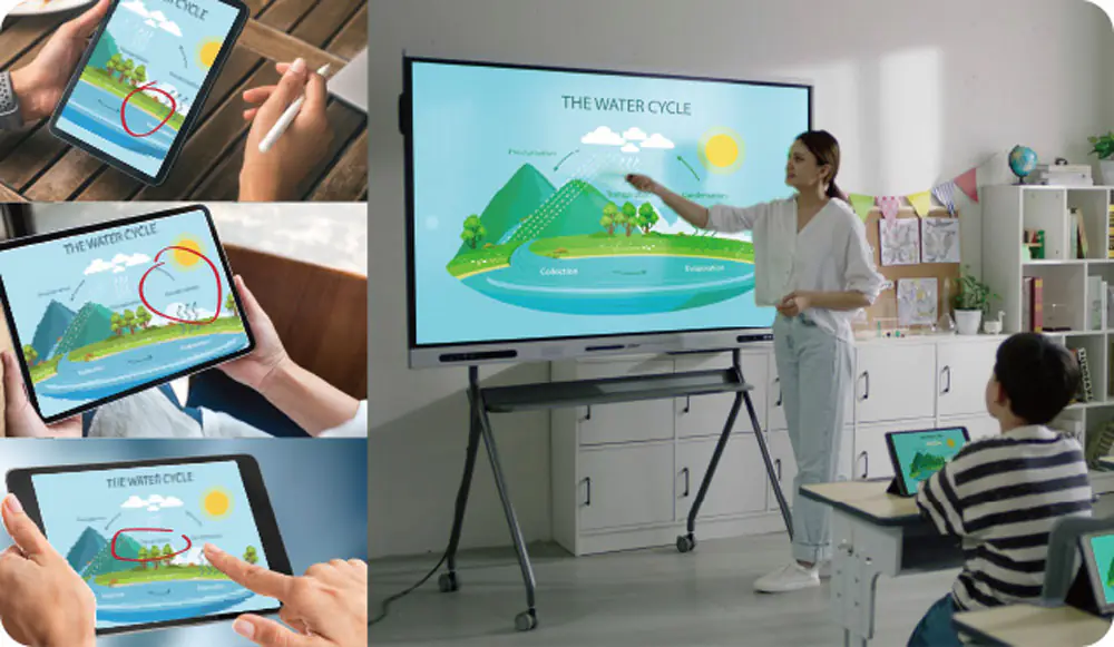 Công nghệ cảm ứng đa điểm cho phép nhiều người sử dụng cùng lúc mà không gặp phải bất kỳ sự gián đoạn nào. Đây là một tính năng rất hữu ích trong các buổi học nhóm, thảo luận hoặc họp trực tuyến.