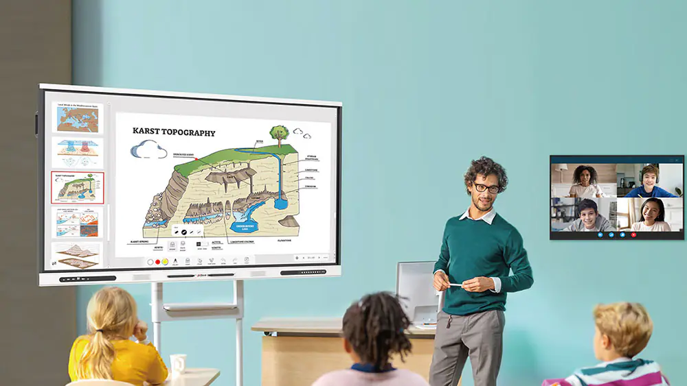 Màn hình tích hợp hệ điều hành Android, giúp người dùng dễ dàng cài đặt và sử dụng các ứng dụng hỗ trợ công việc, giảng dạy, như các phần mềm trình chiếu, họp trực tuyến, học trực tuyến... mà không cần phải kết nối với PC.